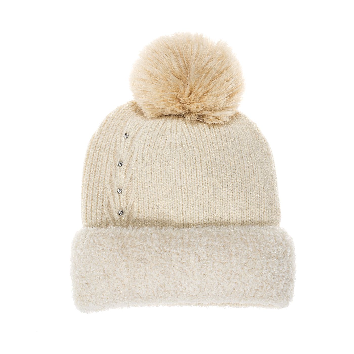 Cream Lurex Pom Pom Beanie